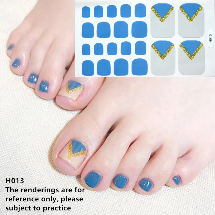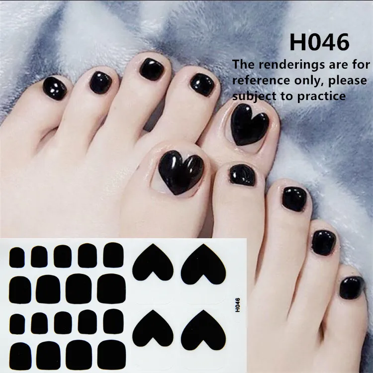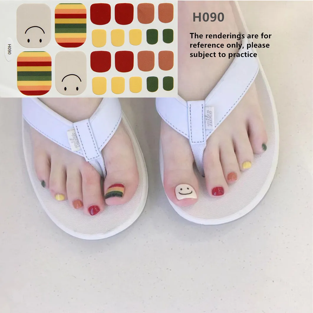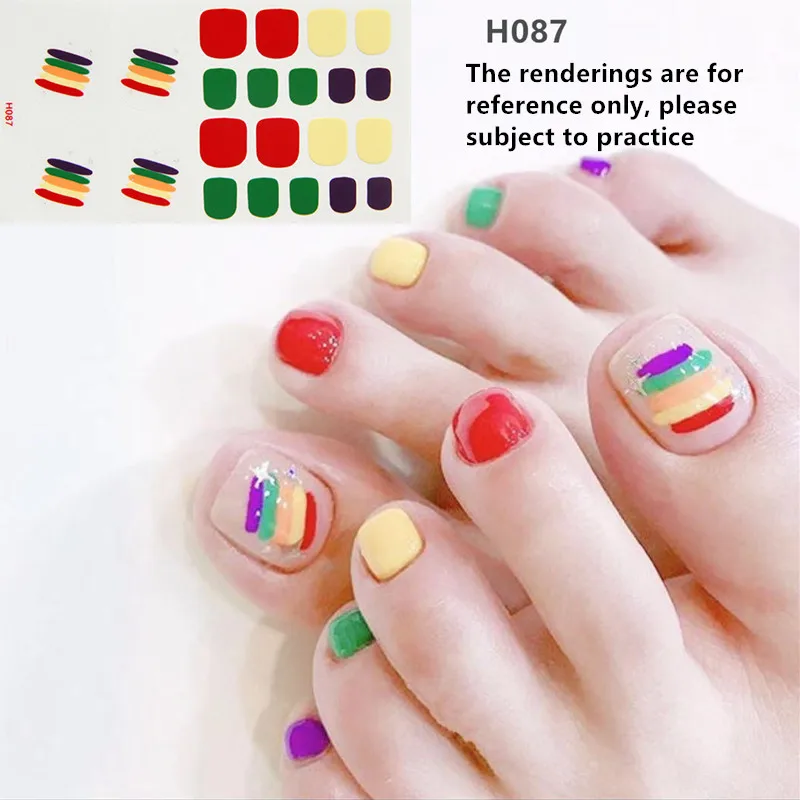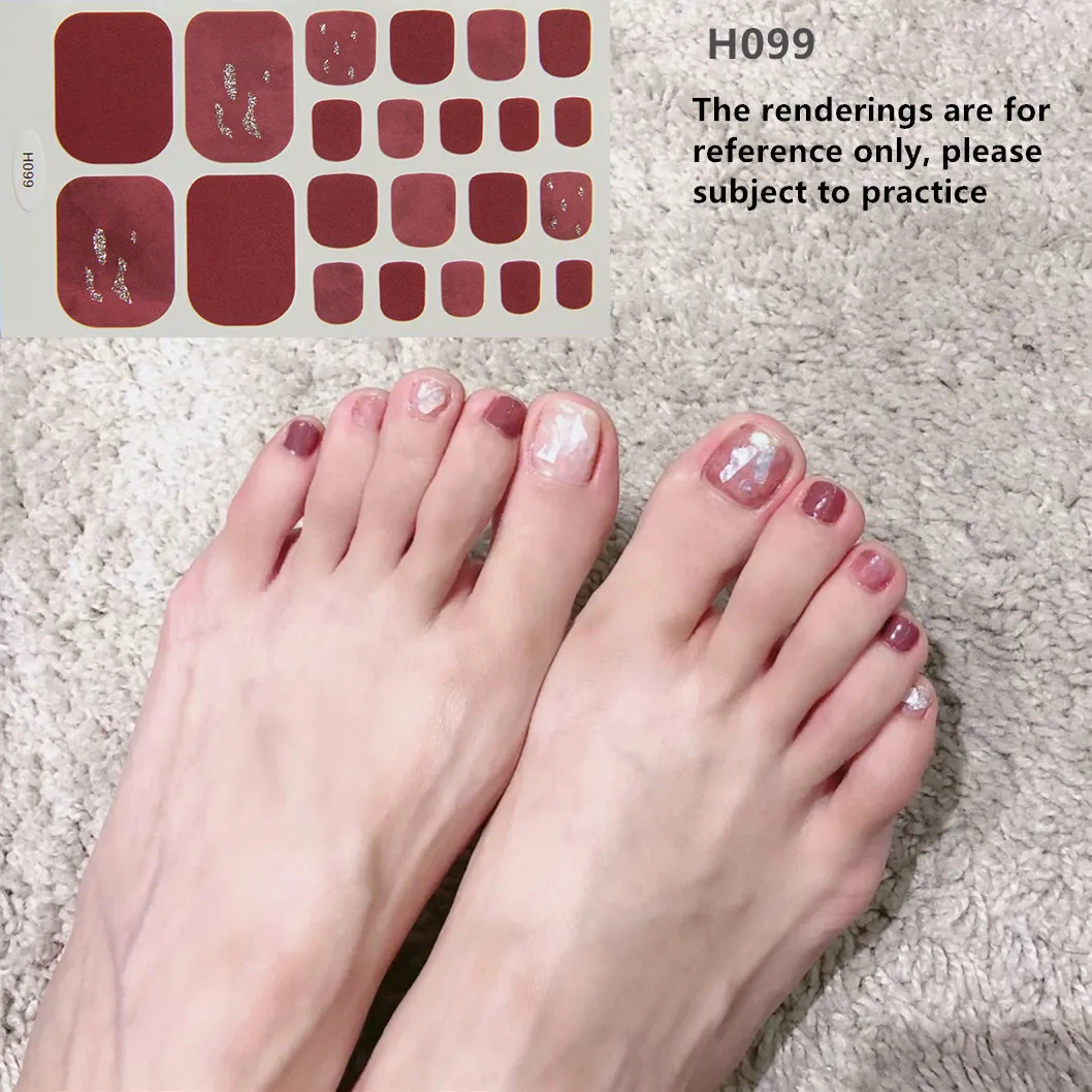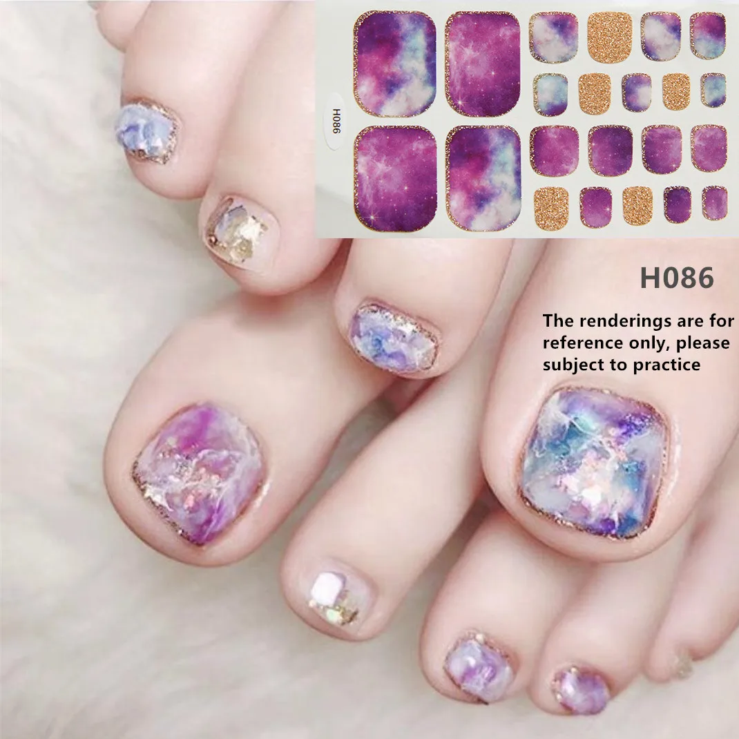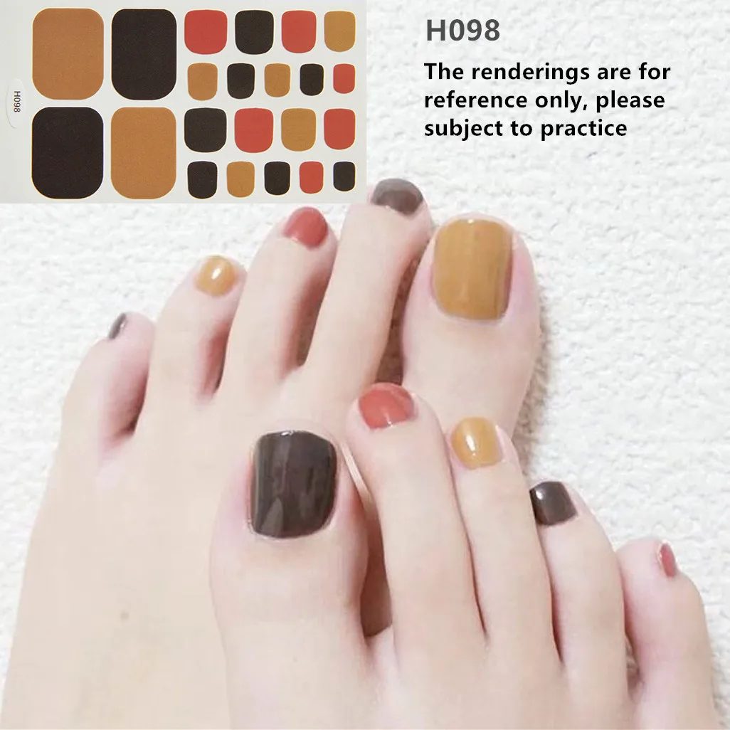 22tips/sheet Toe Nail Stickers Waterproof Fashion Toe Nail Wraps Nail Art Full Cover Adhesive Foil Stickers Manicure Decals