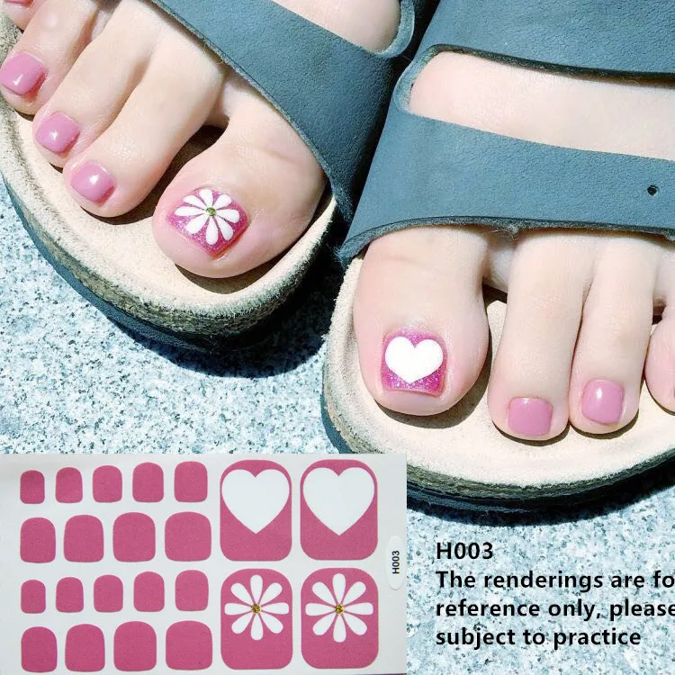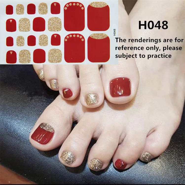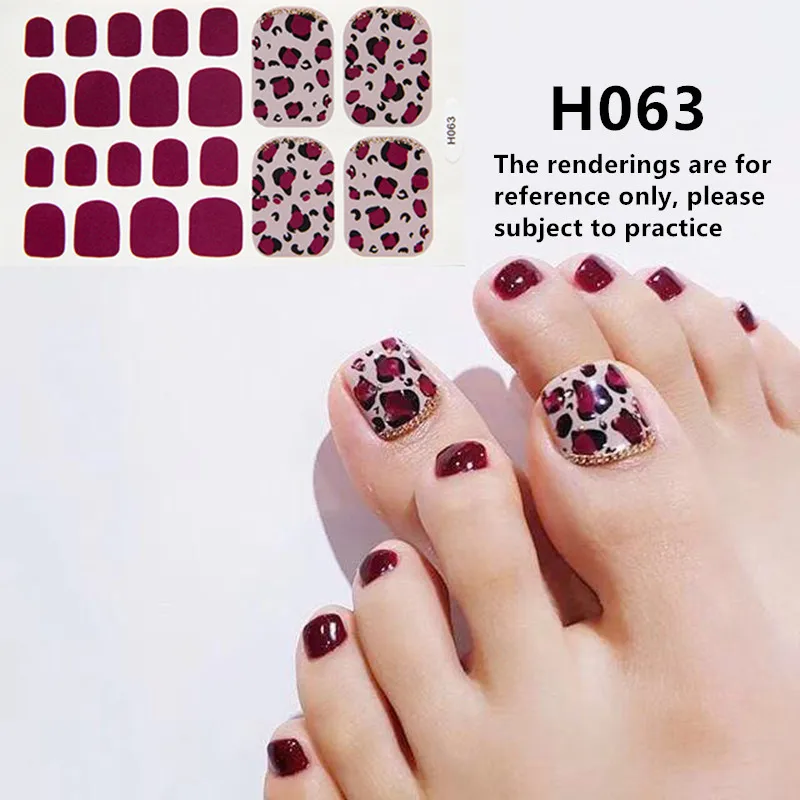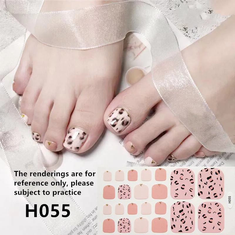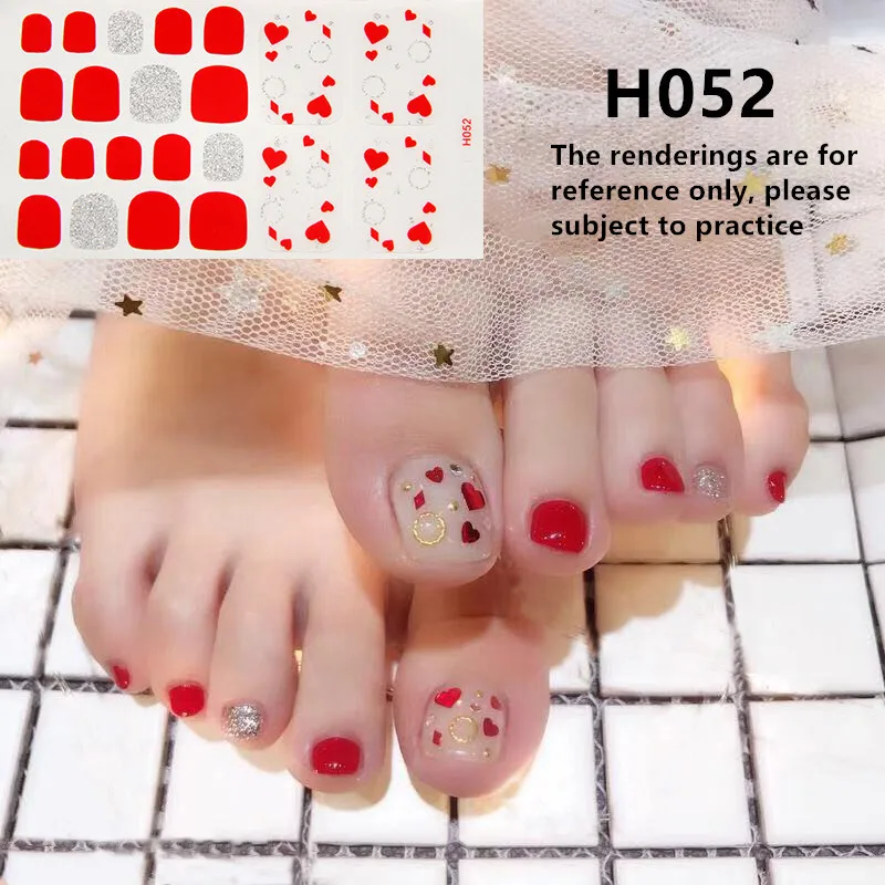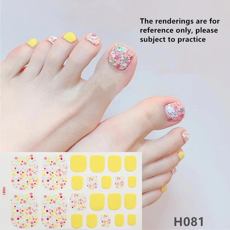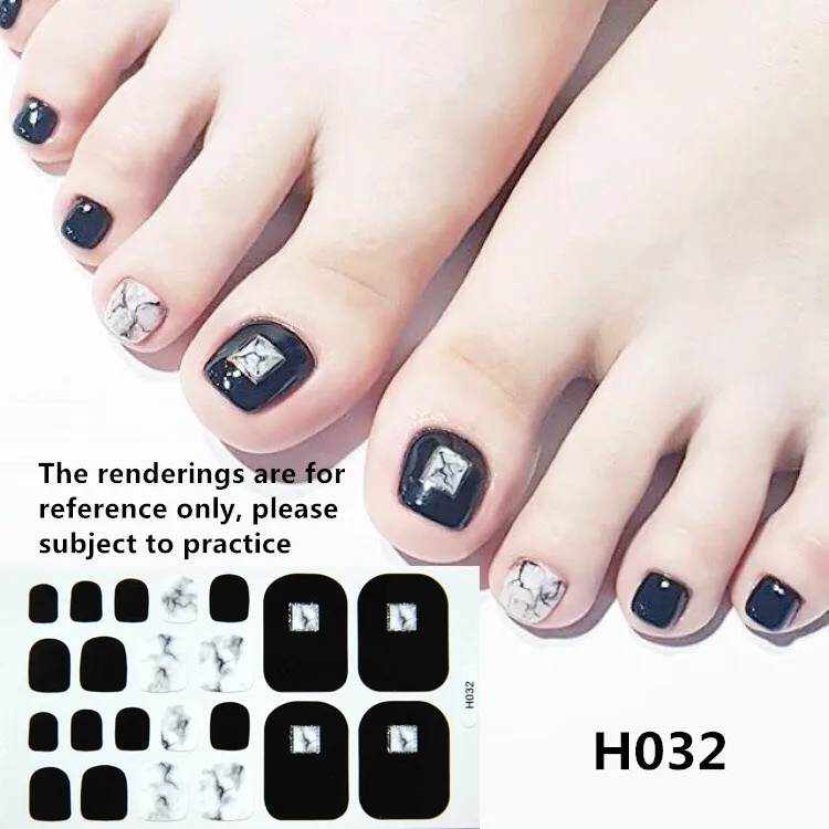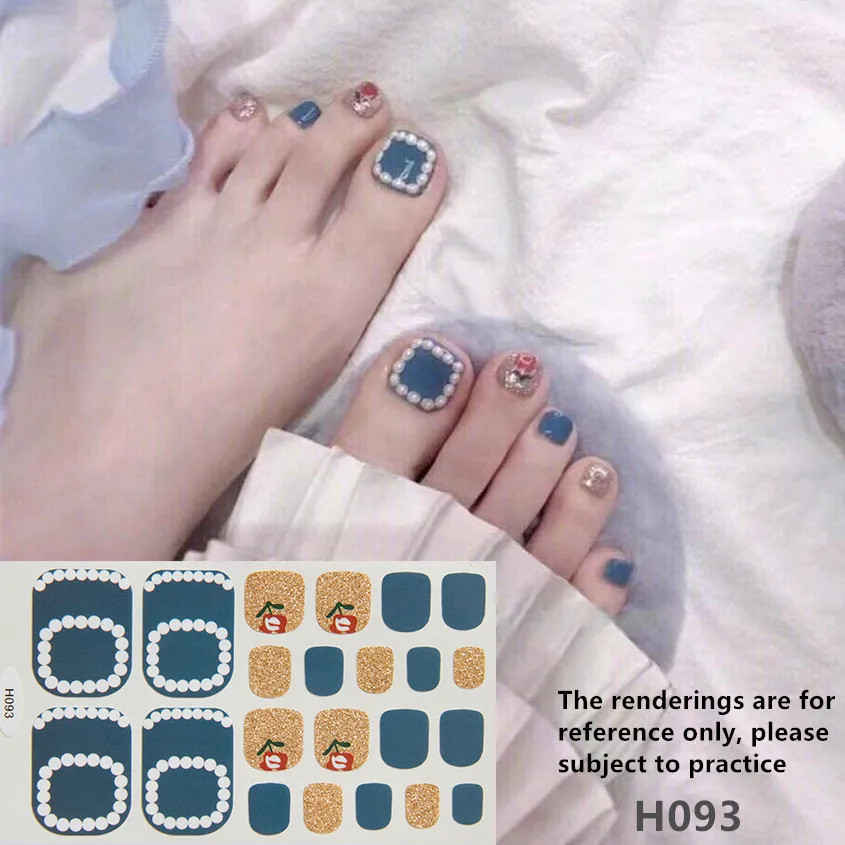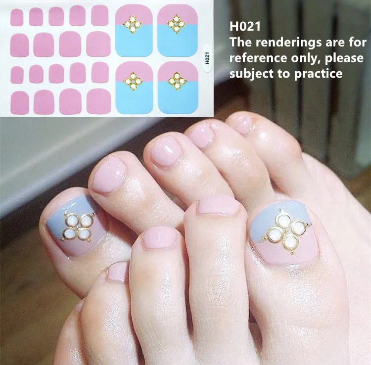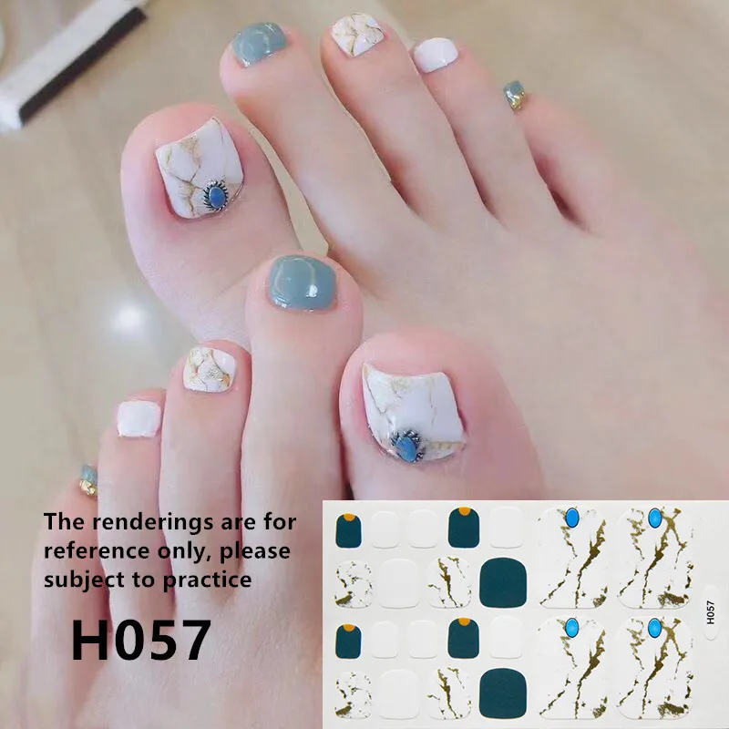22tips/sheet Toe Nail Stickers Waterproof Fashion Toe Nail Wraps Nail Art Full Cover Adhesive Foil Stickers Manicure Decals
