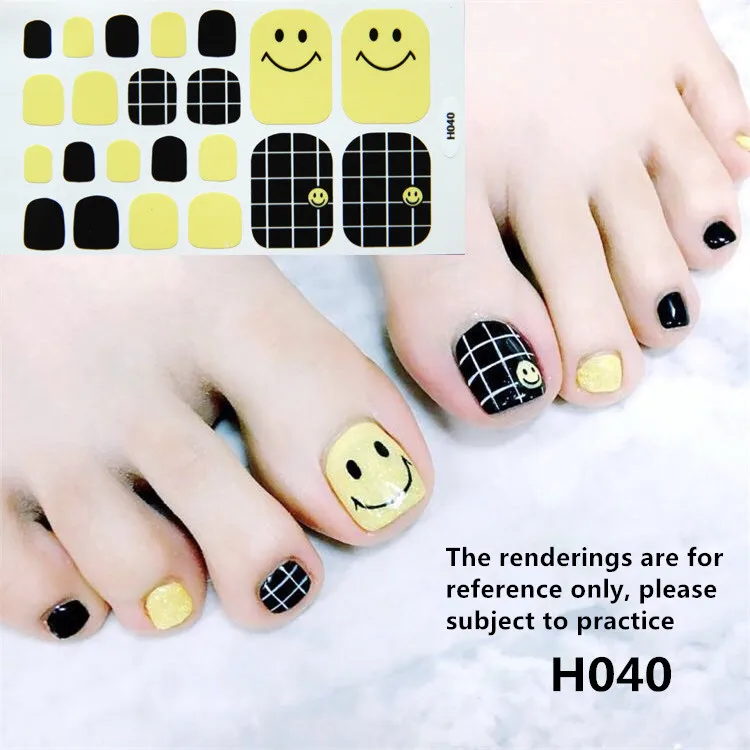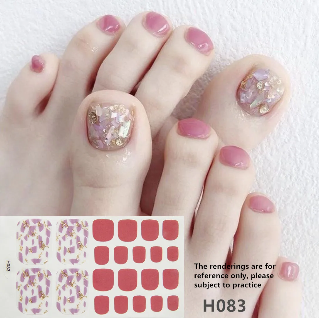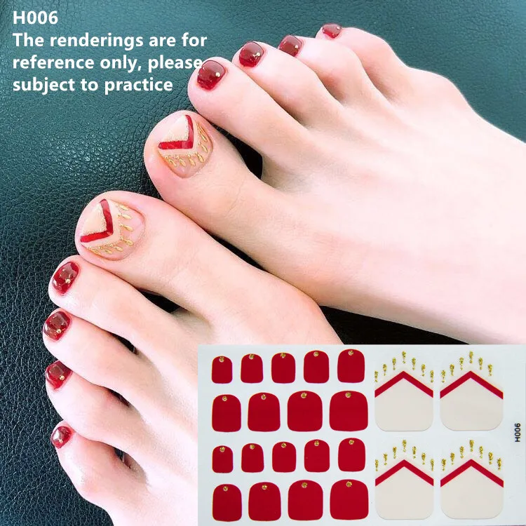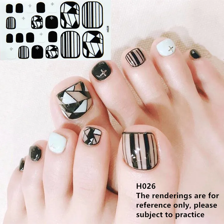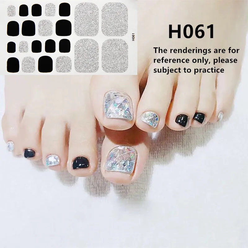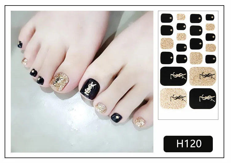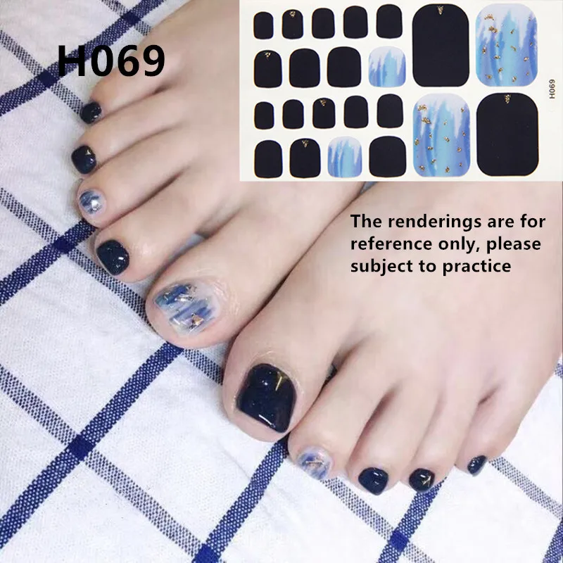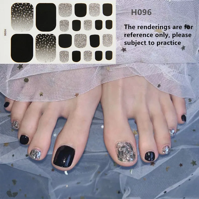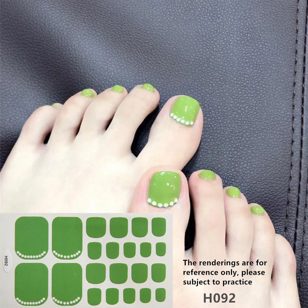 22tips/sheet Toe Nail Stickers Waterproof Fashion Toe Nail Wraps Nail Art Full Cover Adhesive Foil Stickers Manicure Decals