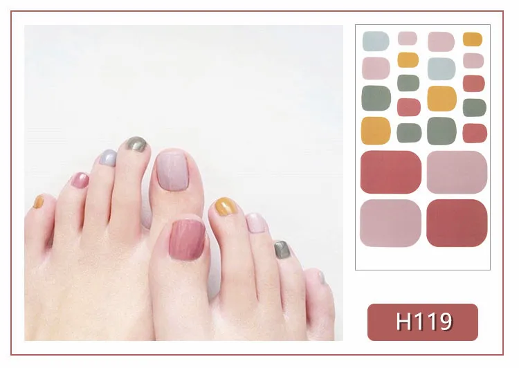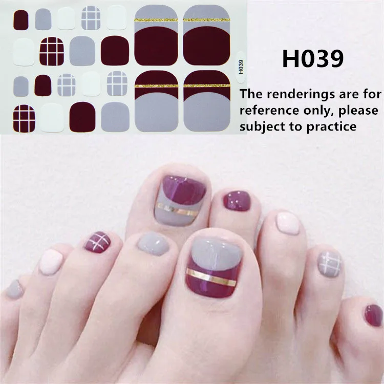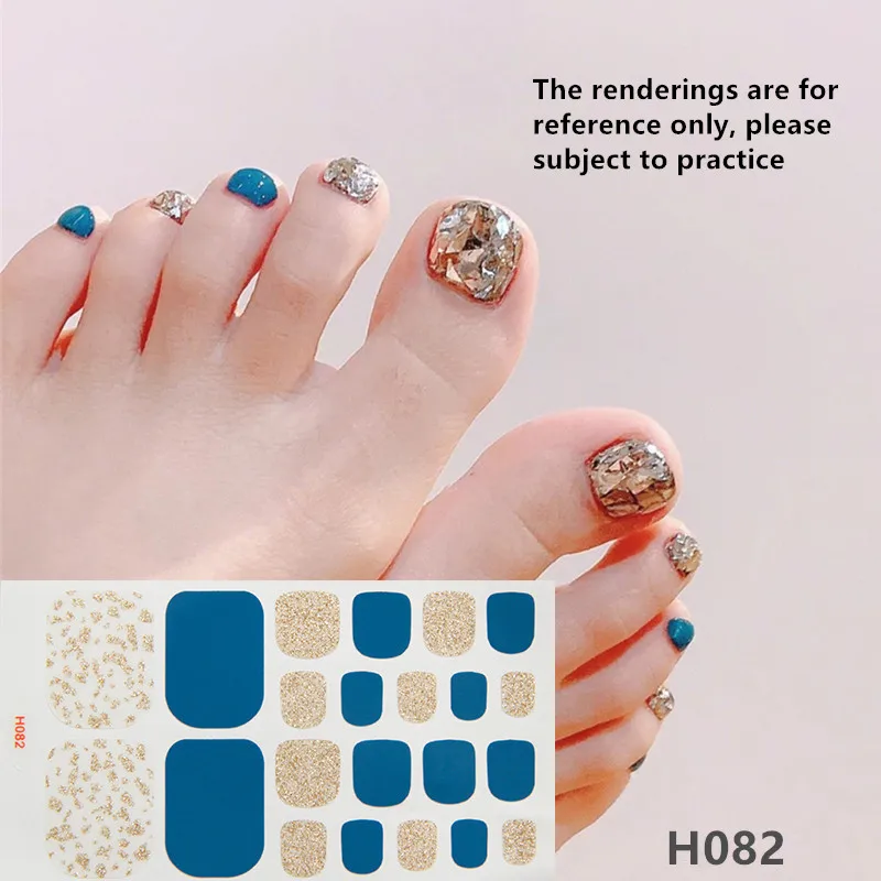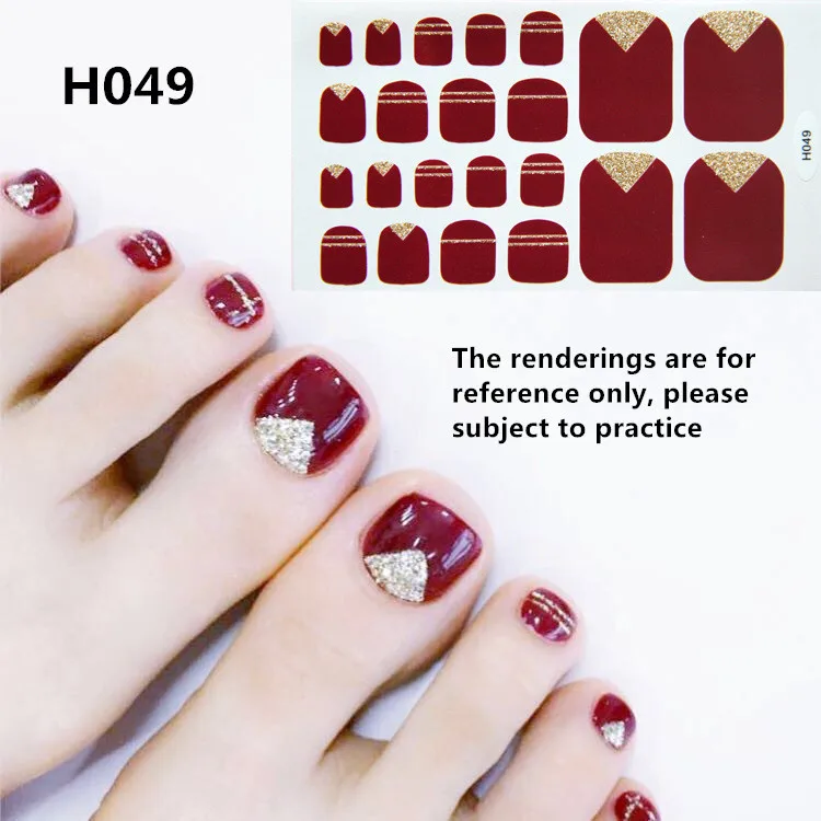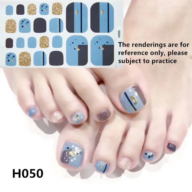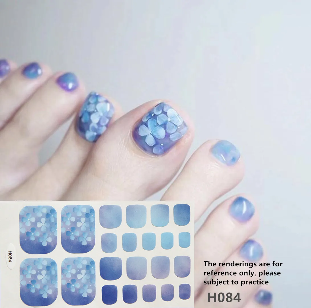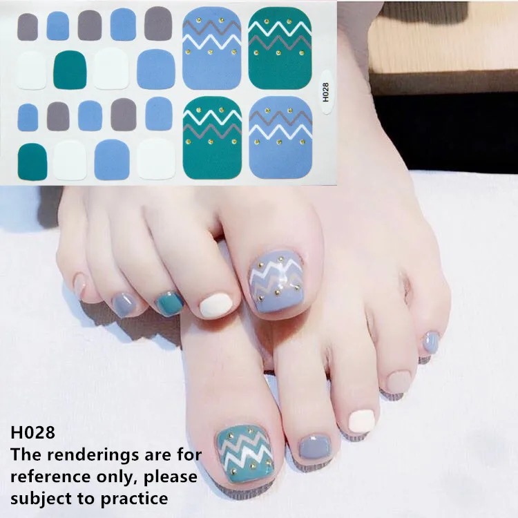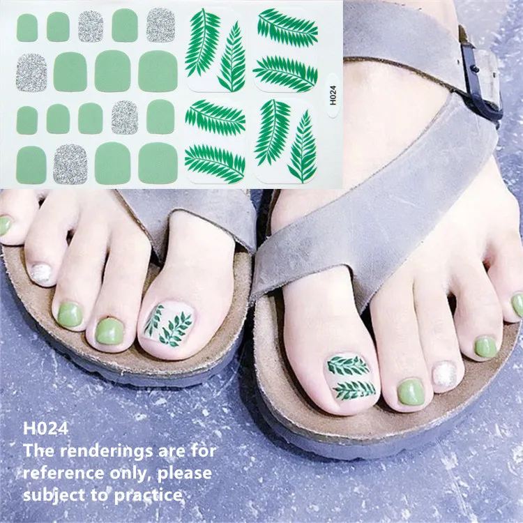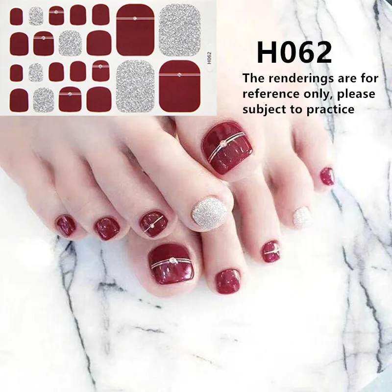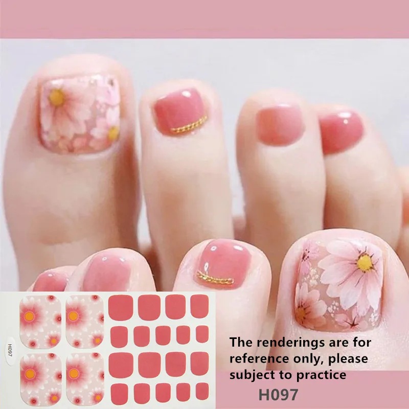 22tips/sheet Toe Nail Stickers Waterproof Fashion Toe Nail Wraps Nail Art Full Cover Adhesive Foil Stickers Manicure Decals