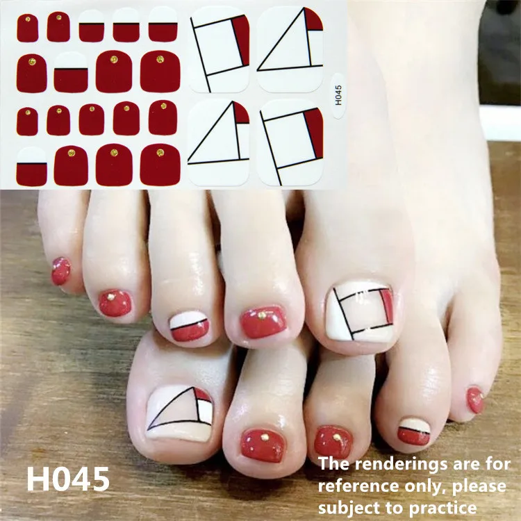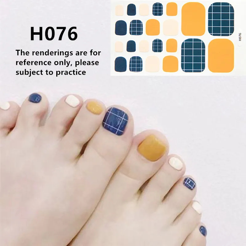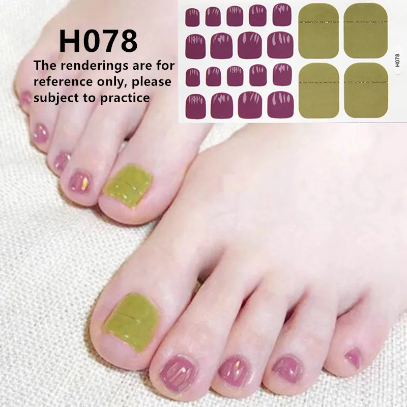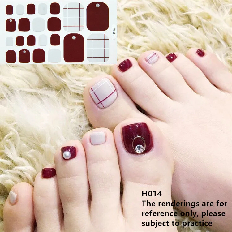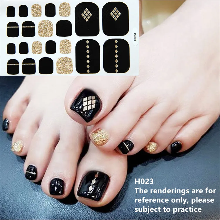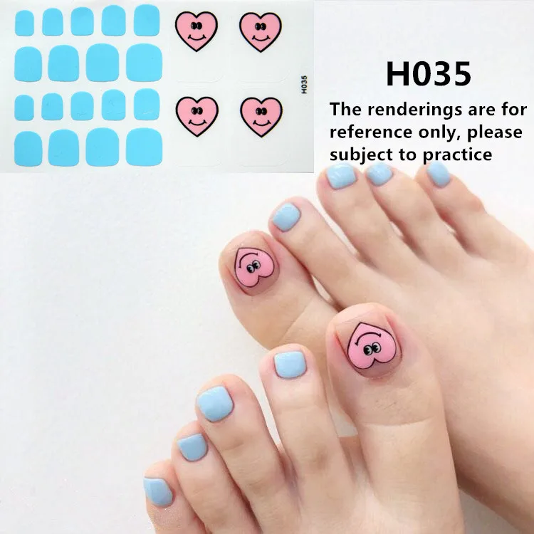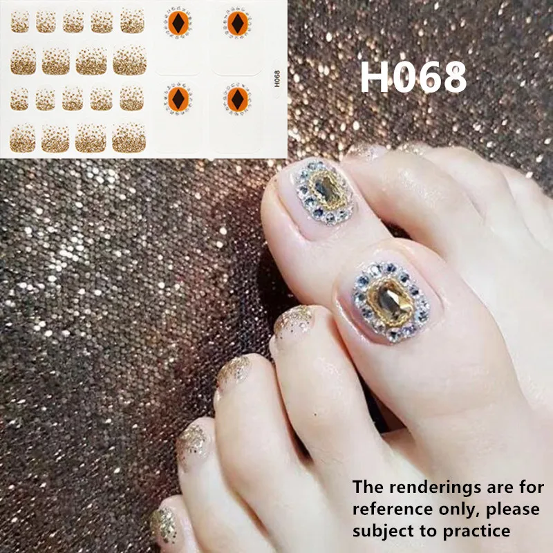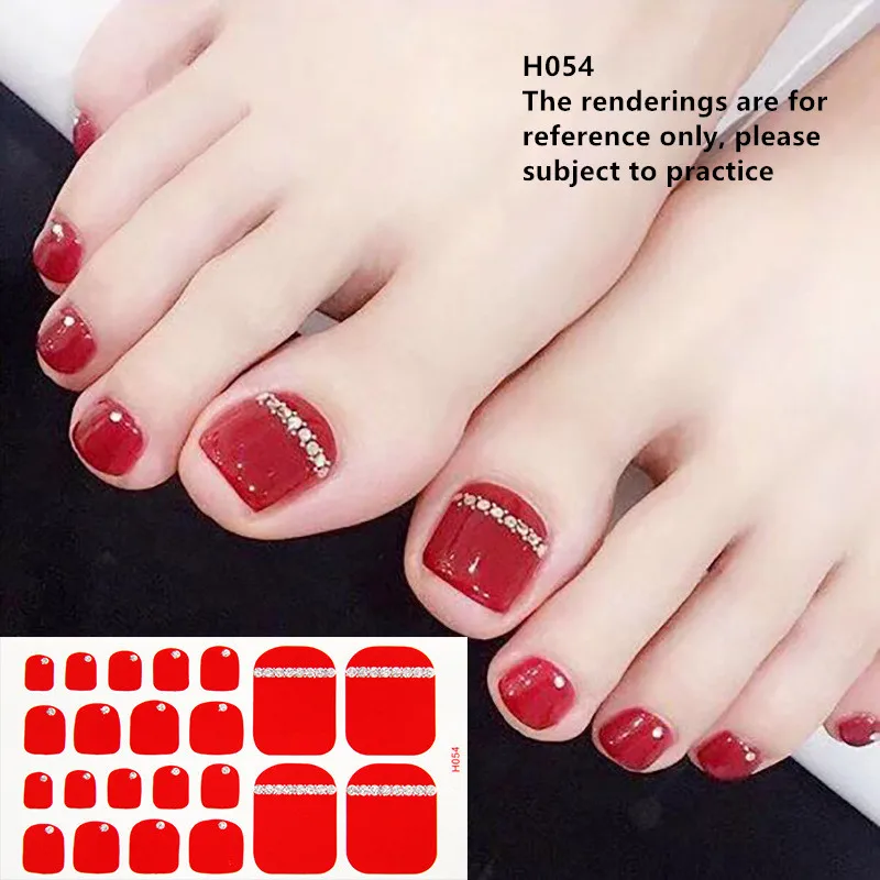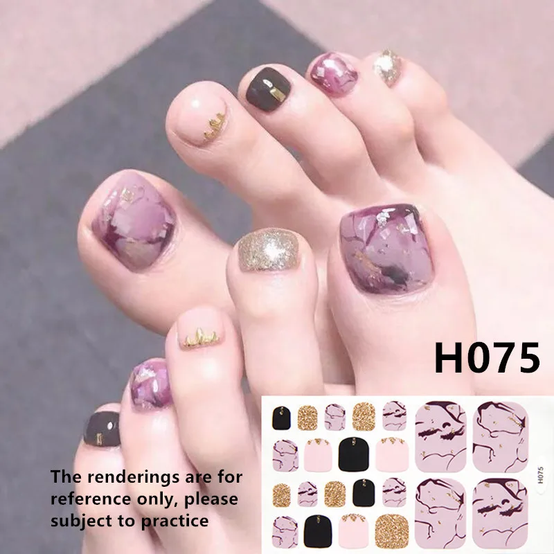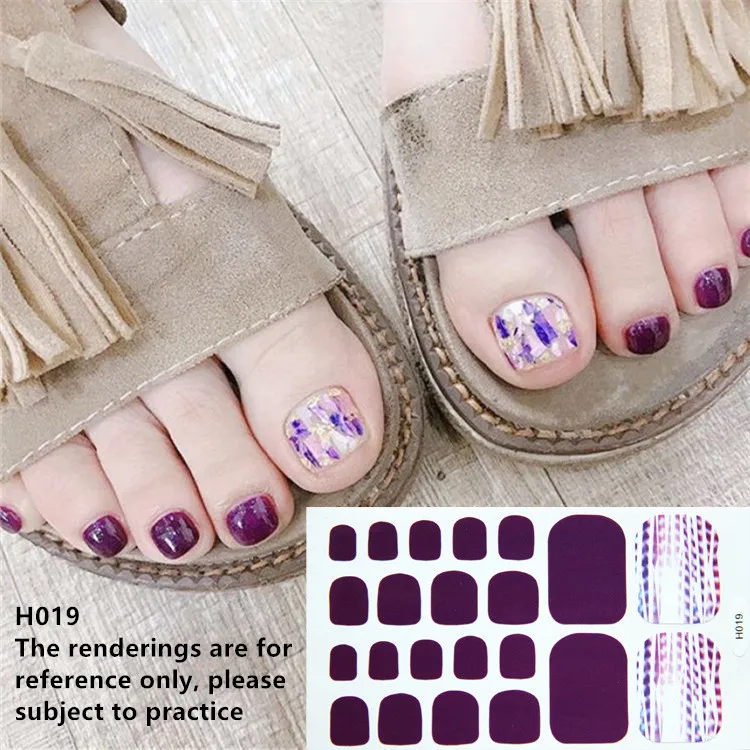 22tips/sheet Toe Nail Stickers Waterproof Fashion Toe Nail Wraps Nail Art Full Cover Adhesive Foil Stickers Manicure Decals
