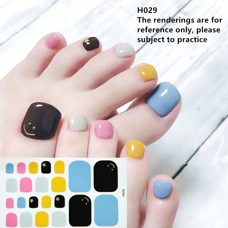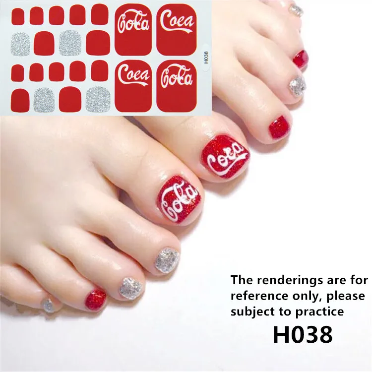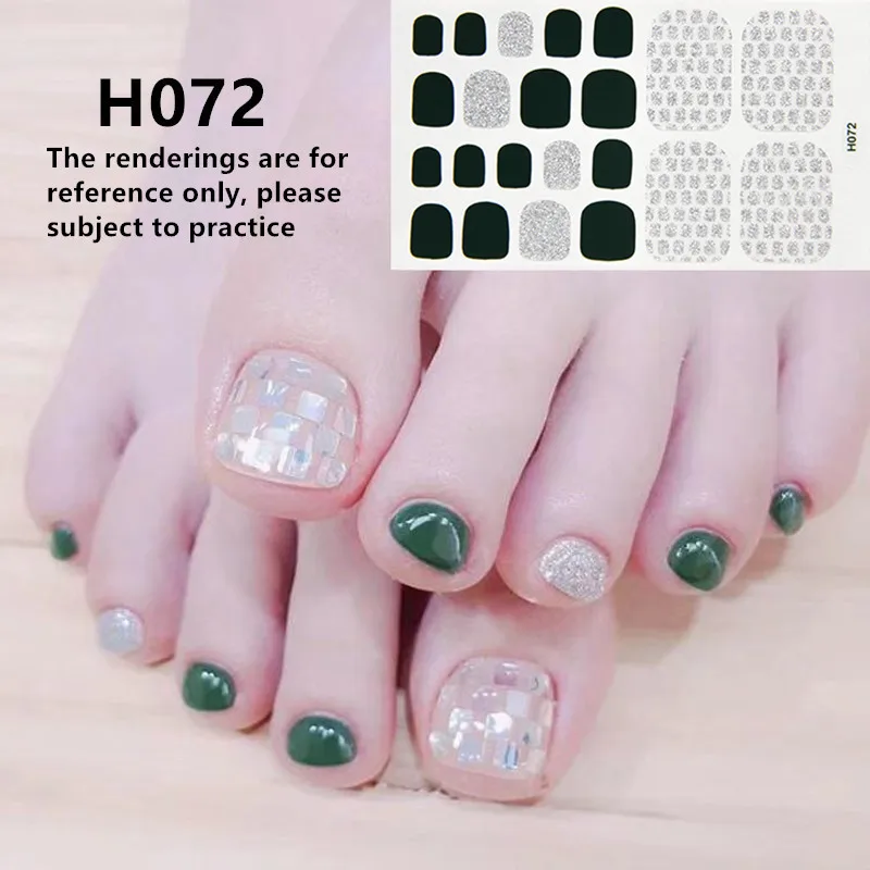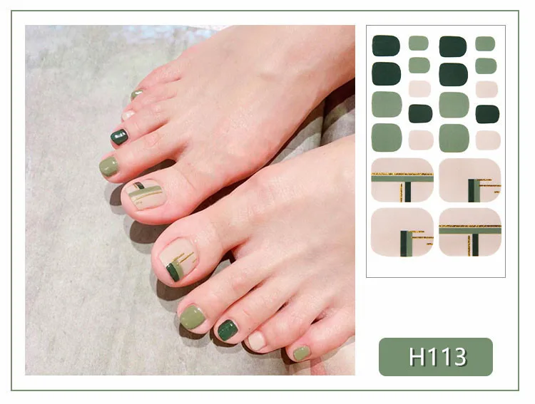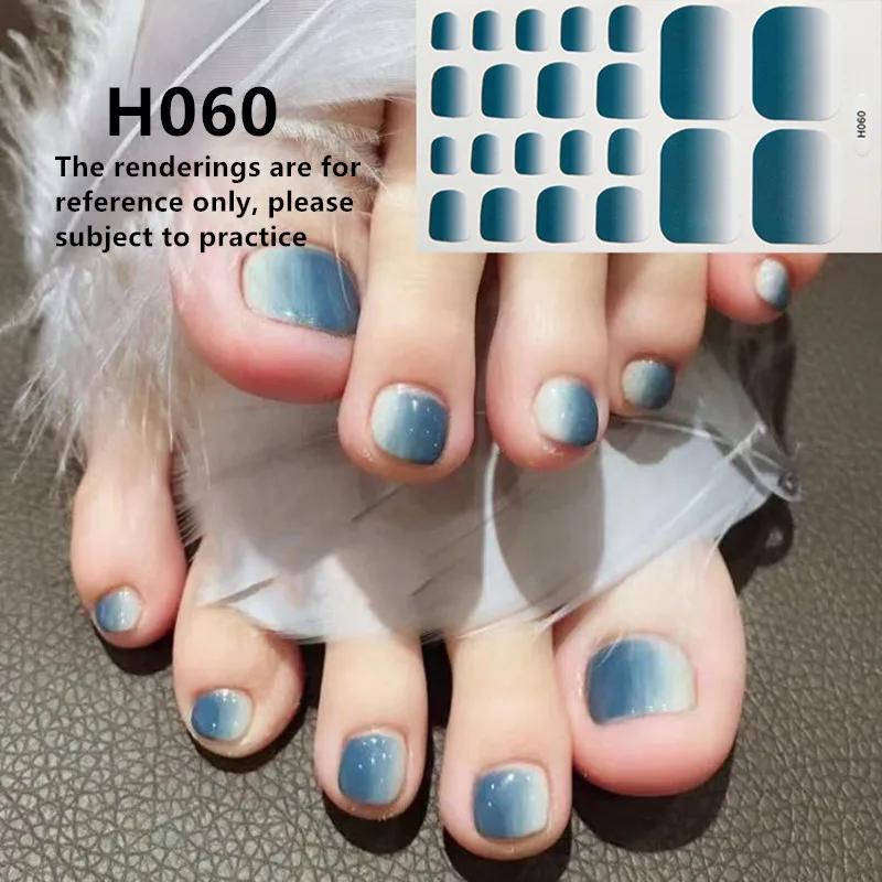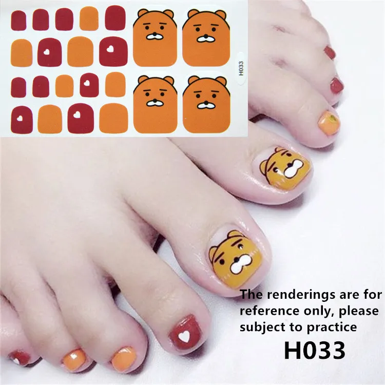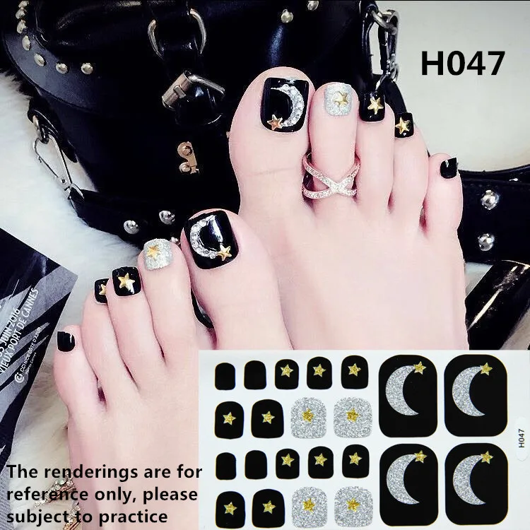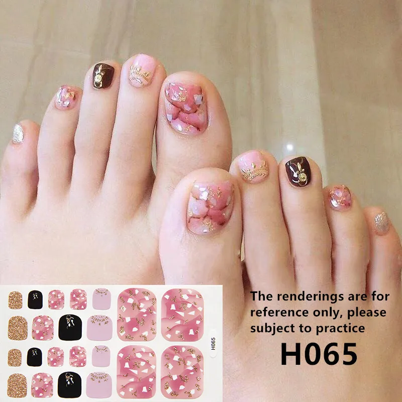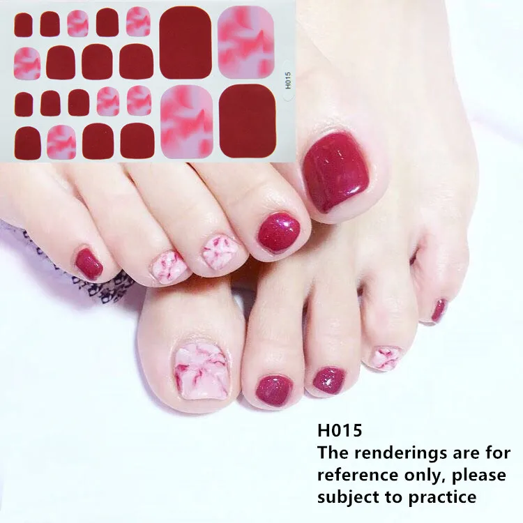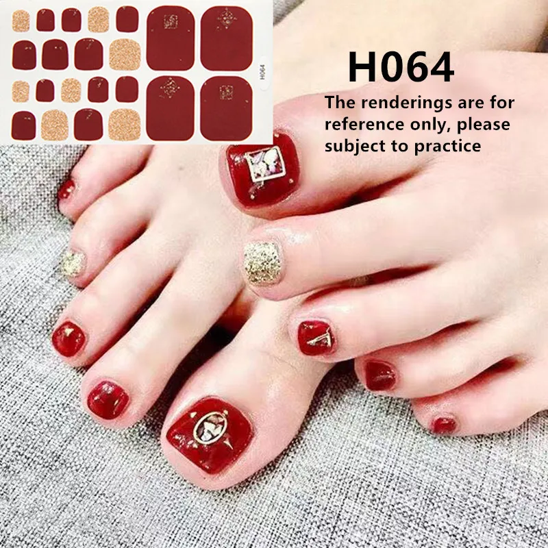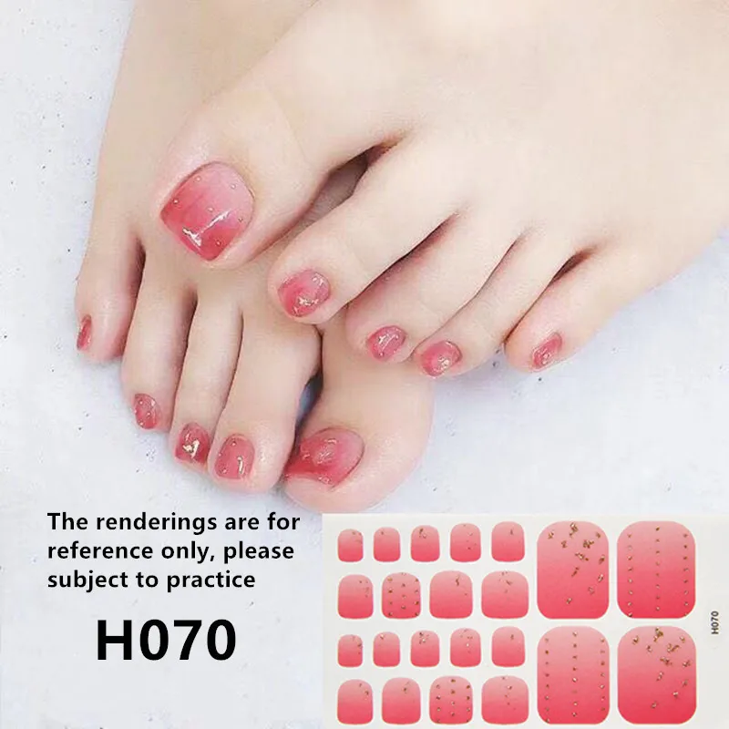 22tips/sheet Toe Nail Stickers Waterproof Fashion Toe Nail Wraps Nail Art Full Cover Adhesive Foil Stickers Manicure Decals