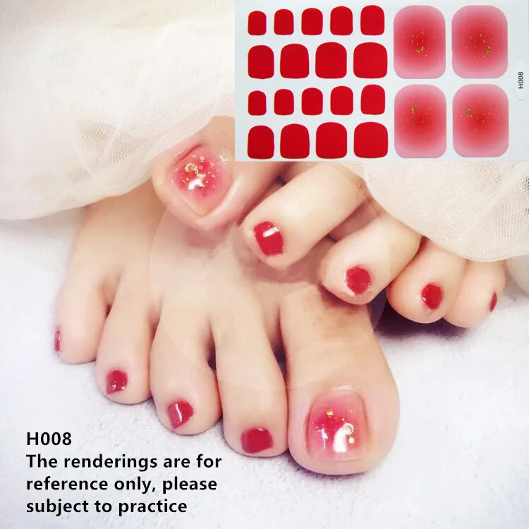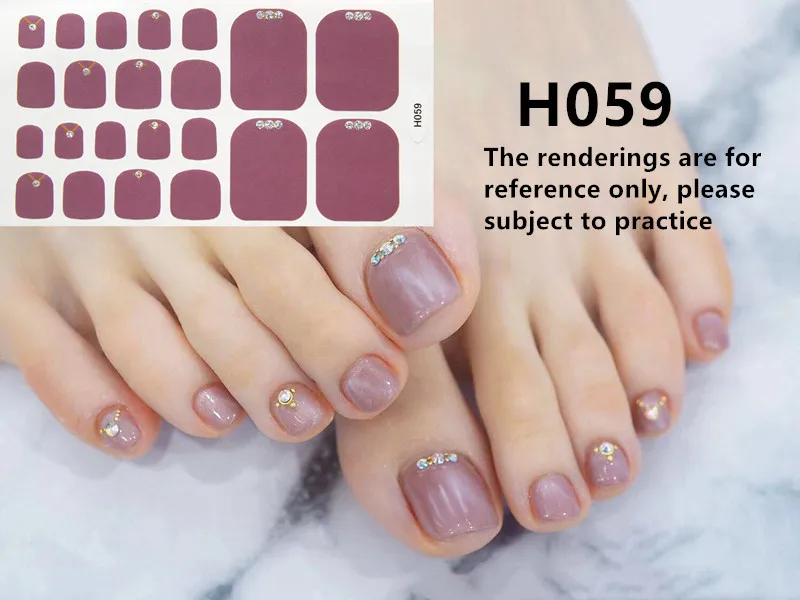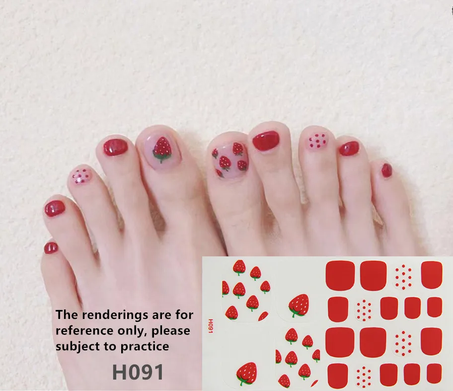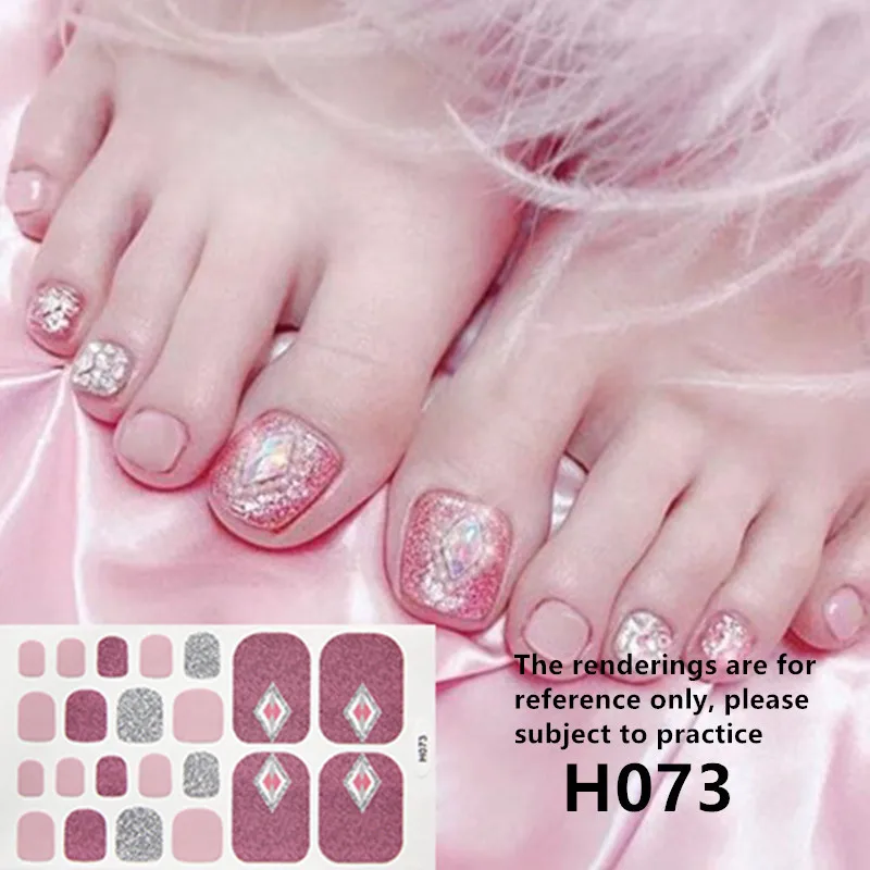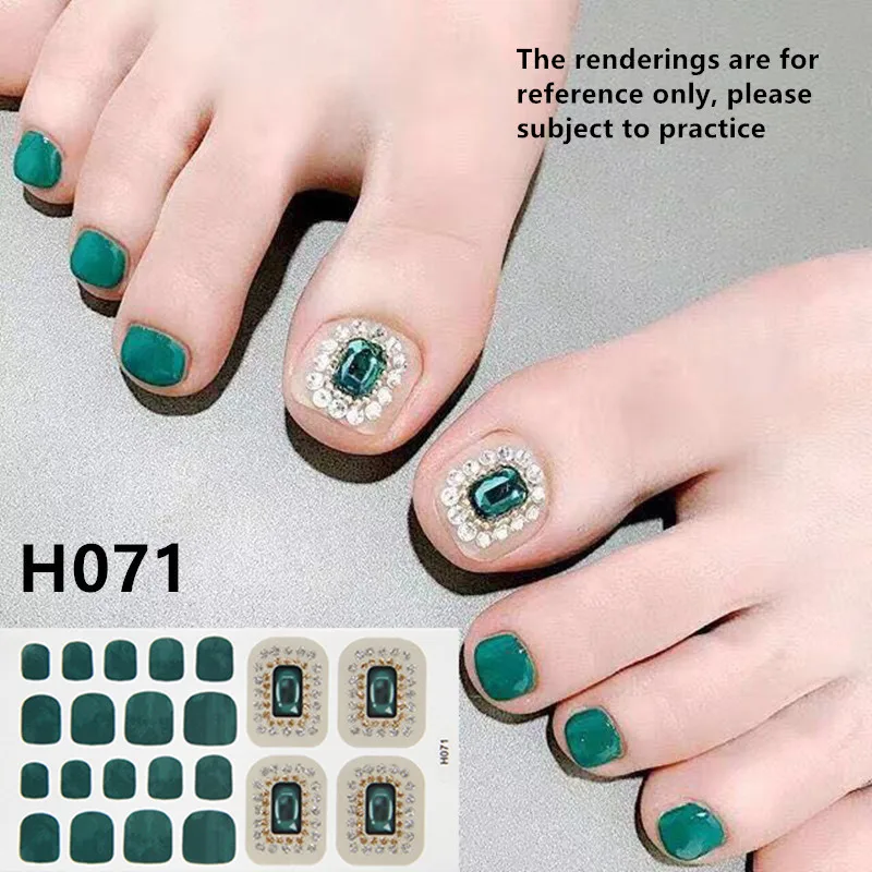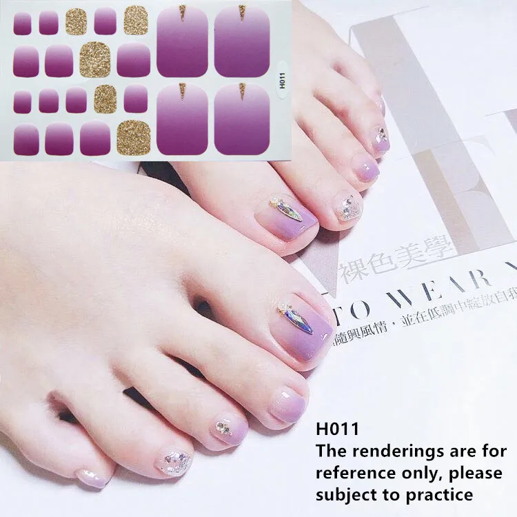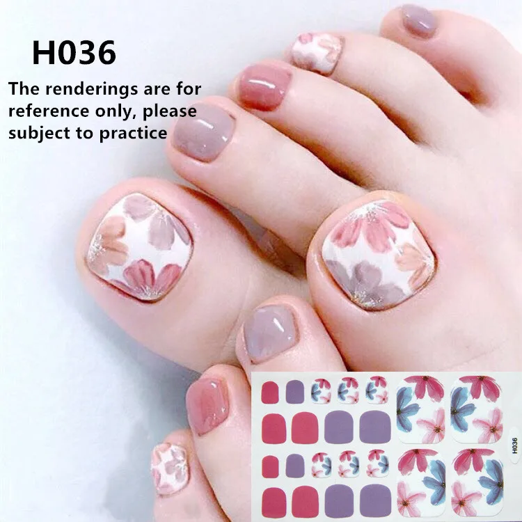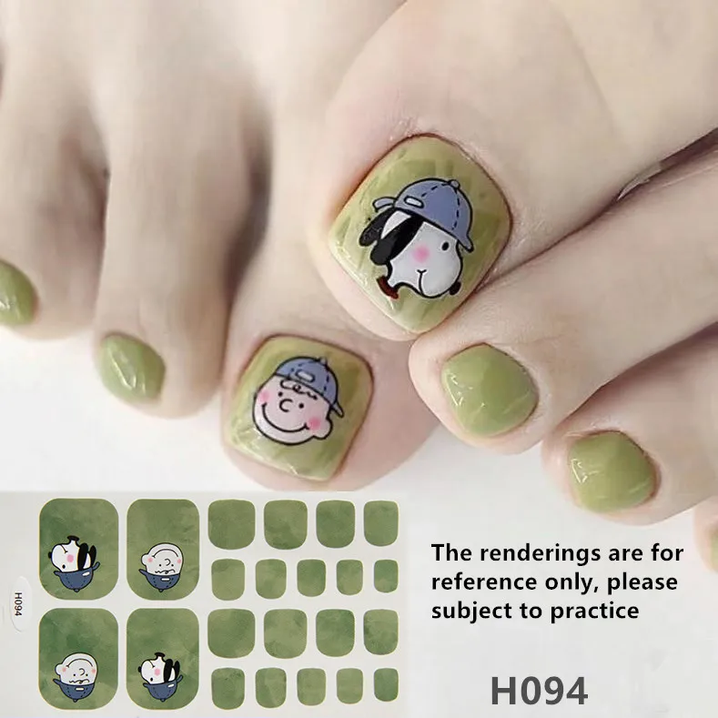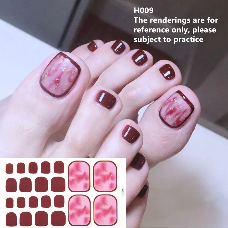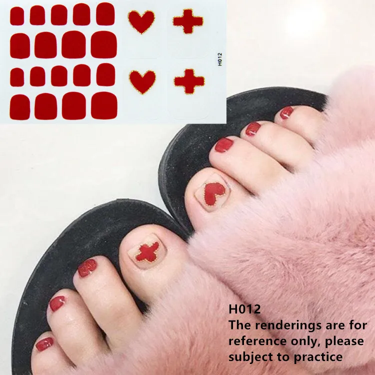 22tips/sheet Toe Nail Stickers Waterproof Fashion Toe Nail Wraps Nail Art Full Cover Adhesive Foil Stickers Manicure Decals