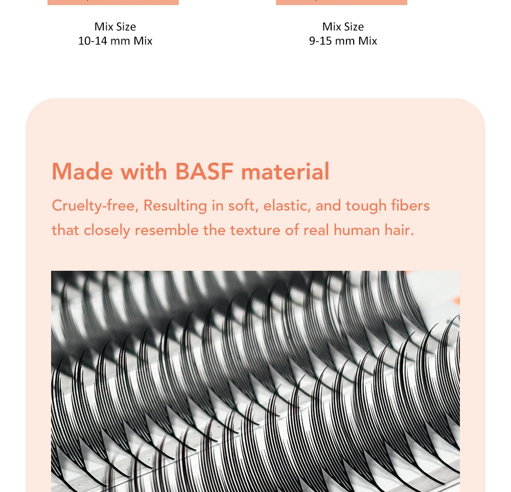 Premium hand-made synthetic lashes designed for a natural, soft, and feathered anime-inspired look. Lightweight and silky, these pre-made fan lashes enhance your eyes with effortless volume and curl. Each tray contains 12 rows of top-grade lashes, perfect for professional salons or personal use. Safe, antimicrobial-tested, and customizable with private label options.