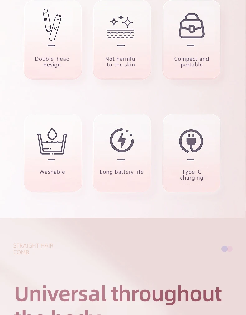 • Gentle Hair Removal: Dual-head precision trimming safe for sensitive areas.