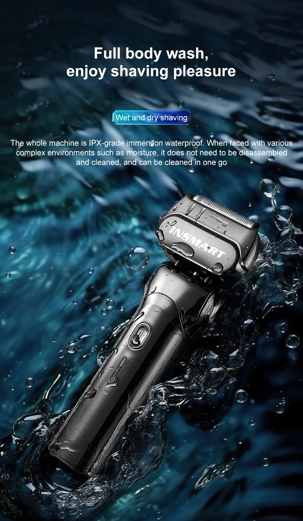 【IPX7 Waterproof】 - Versatile Wet & Dry Shaving Experience ultimate flexibility with our IPX7 waterproof electric razors for men. Enjoy a quick, gentle dry shave that won't harm skin, or indulge in a refreshing wet shave with foam for a luxurious grooming session.