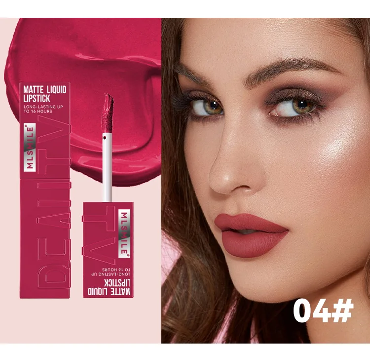 The MLSMILE Velvet Matte Liquid Lipstick delivers intense, long-lasting color with a smooth, creamy texture. Its non-stick, waterproof, and quick-drying formula ensures all-day wear without smudging or fading.
